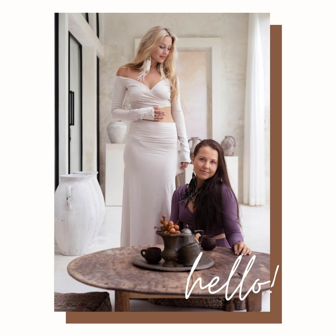 What you experience today in our clothing collection, is a meeting point of Sara's and Oona's sisterhood, collaboration and inspiration to empower women to step into their full blooming power and potential, ultimately feeling beautiful, radiant and liberated in their fullest expression, as the divine Goddesses we all are.